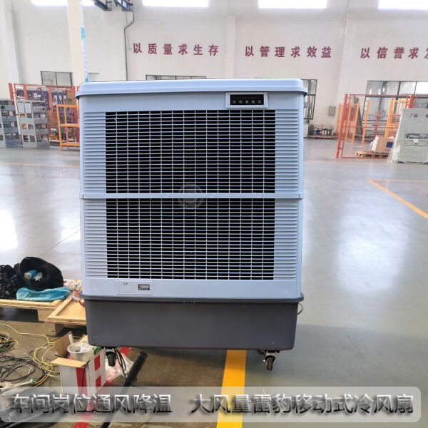 而雷豹移动式工业冷风机就是在固定式的基础上增加了:大水箱、移动脚轮、水泵、蒸发湿帘的一体机,保留了工业固定式冷风机大风量、降温范围广的特点,增加了灵活度。