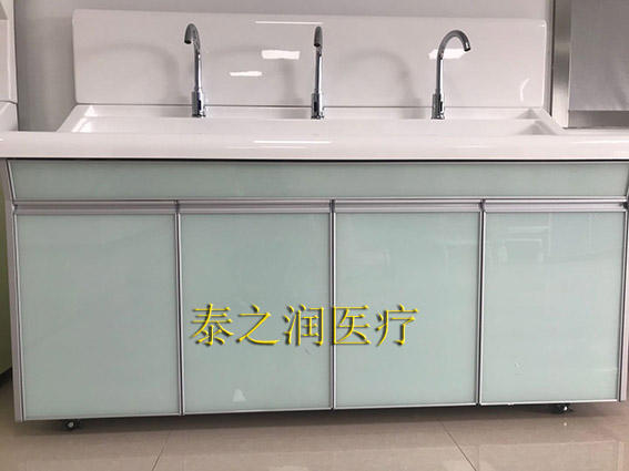 高分子洗手池材质特点:采用高分子材料一次吸塑成型,出水方式有:感应式、膝控式、脚踏式和手动开关,一台洗手池可客户要求选择单一出水方式或多种出水方式。洗手池分高背和低背,高背总高度1800mm,配有美容镜,照明灯,皂液器,可按客户要求配置烘手器和热水器。低背板无配置。