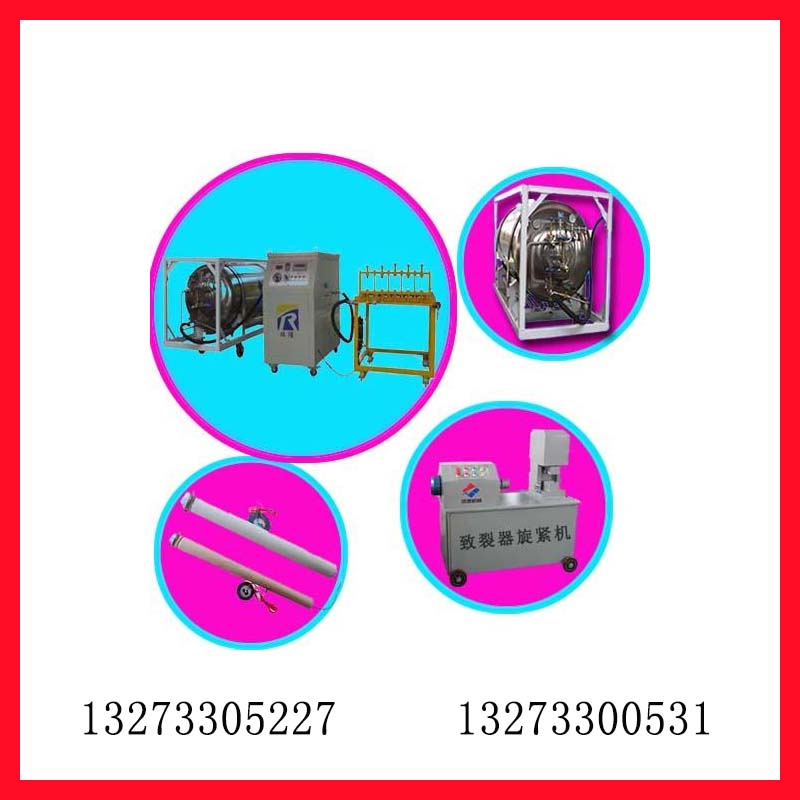 操作简便,通过充装钻把工业*二氧化炭压缩到致裂筒内,置入安-全加热器、铜垫皮、旋紧充气栓及泄压栓螺*。将充装饱满的致裂筒携至现场,连接启爆器导线置入钻孔或工作面即可。当微电流导通安-全加热器后,瞬间产生强大气流击穿破裂片,通过泄压端口直接作用被爆物质剧烈冲击力驱动被爆介质发生移位。释放工作压力270兆帕1c ㎡。根据被爆介质强度选择不同规格的致裂筒,串联或并联皆宜。