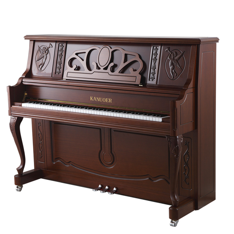 采用了使音板振动更具活力,低音更加浑厚悠长的斜拼式音板专利设计精选优质欧洲云杉的实木音板,确保完整的声学性能。独根色木码桥 ,音频的传递更迅速、精确。德国进口的申达针和申达呢材料,优质坚硬的色木木材,德国引进的全套精密设备加工的击弦机。