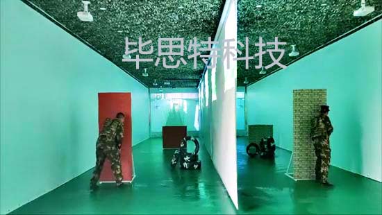 模拟she击训练采用影像she击训练软件、情景模拟训练软件相结合的方式,采用高清投影技术将训练科目、情景训练内容投she至靶位大屏幕上。影像训练科目紧密结合训练大纲展开,其内容囊括了日常精度she击训练,突发情况处置训练、真shi场景she击训练等内容。