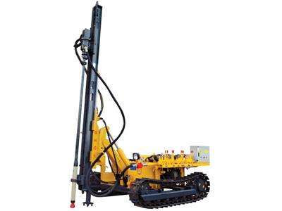“银潮牌”履带式露天潜孔钻车是以气动、电动或内燃机为驱动动力;工作压力分为高、中、低风压的系列产品。具有爬坡能力大,对于崎岖不平的路面适应性强;凿岩作业稳定性好的特点。