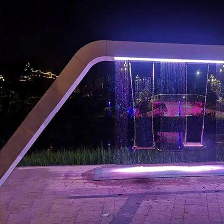水幕秋千无动力游乐设备又叫水帘秋千,该设备是水幕和秋千的结合体。游客在荡秋千的时候,感应器就会收集到游玩者的信息,从而计算水幕落水的时机,游客穿梭水幕时,会带来惊险刺激感,生怕被水淋湿,还可以近距离观赏水幕景观,是一款非常不错的景观无动力游乐设备。