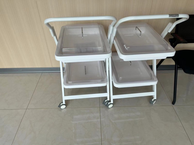 内镜转运车其转材料亦由造清洗槽台面的高分子复合材料独开模成,车体由不锈钢喷塑而成,具有耐腐、不沾、车行畅、放方便等优点。盆内内镜存放导航隔条使污染部位和非污染部位分离。多层设计使户在使用过中可将清洁和污染的内镜分层标明后置放,避免交叉染等功能