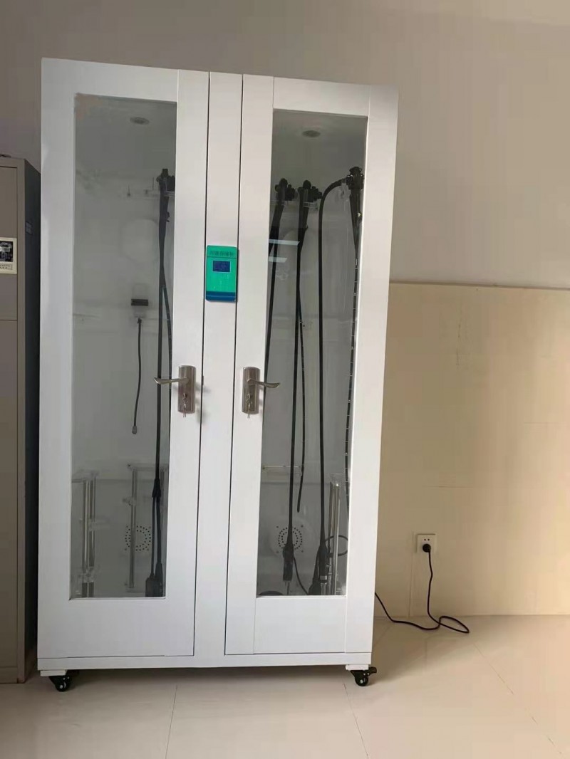 微电脑数显储存柜产品介绍A:数显储存柜分为单门储存柜TZR-SX-I和双门储存柜TZR-SX-II,硬镜储存柜TZR-SXY-I;(型号命名的含义TZR为泰之润品牌,SX为数显简称,I为单门,II为双门,Y为硬镜简称)B:软镜储存柜规格参数:单门储存柜规格为630*535*2080mm(长*宽*高);双门储存柜规格为1150*535*2080mm(长*宽*高),外部采用多工艺处理的钢塑材料,内胆采用优质高分子材料,独立的开模整体吸塑成型,无缝隙,不藏污垢;易清洗、表面细菌残留低,使用方便、安全、快捷,对内镜无磨损。外壳与内胆融为一体,柜内空间密闭效果优异,外观简洁实用,美观大方。软镜柜内部设有上中下三层内镜悬挂系统,全方位的定位内镜,防止相互碰撞。内设智能化自动控制紫外线,循环风的洗消程序,洗消工作自动累时,另有照明、通风、循环干燥、温度湿度显示等功能。单门可储存4-6条内镜,双门可储存6-12条内镜。C:硬镜储存柜规格参数:规格为:785*575*1800mm(长*宽*高)外部采用多工艺处理的钢塑材料,与软镜的不同是硬镜柜没有高分子内胆。