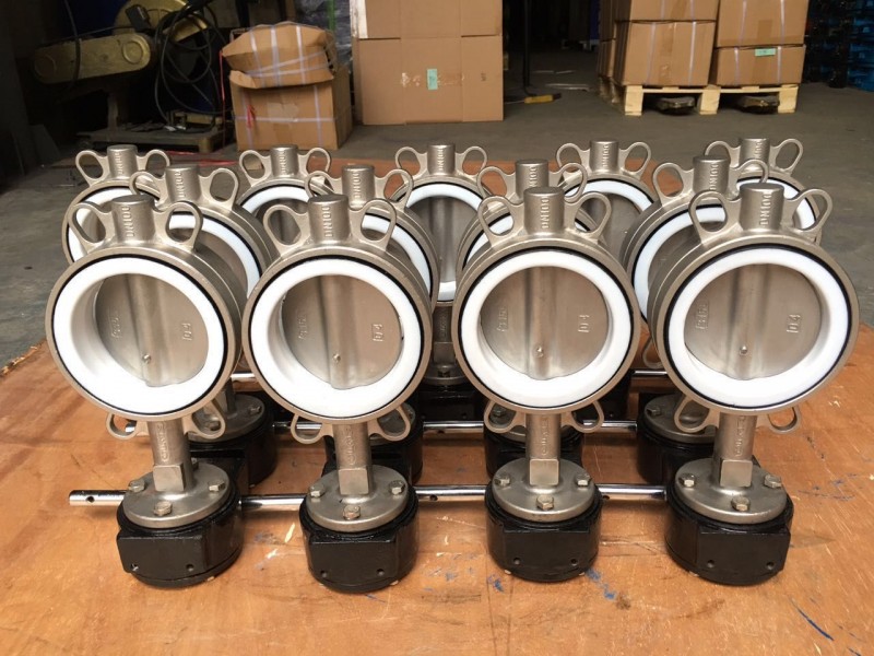 跃正船用不锈钢衬四氟对夹式涡轮蝶阀GB/T3036-94
