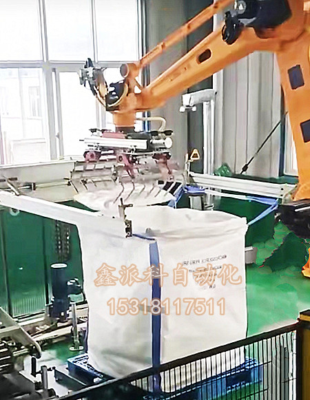 1这样操作可以减少工作程序将袋装产品使用机器人把产品直接装入吨袋内自动堆垛完成堆垛数量后直接用叉车叉走入库。