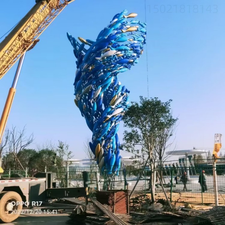 路口龙卷风鱼群雕塑 彩绘不锈钢鱼雕塑摆件