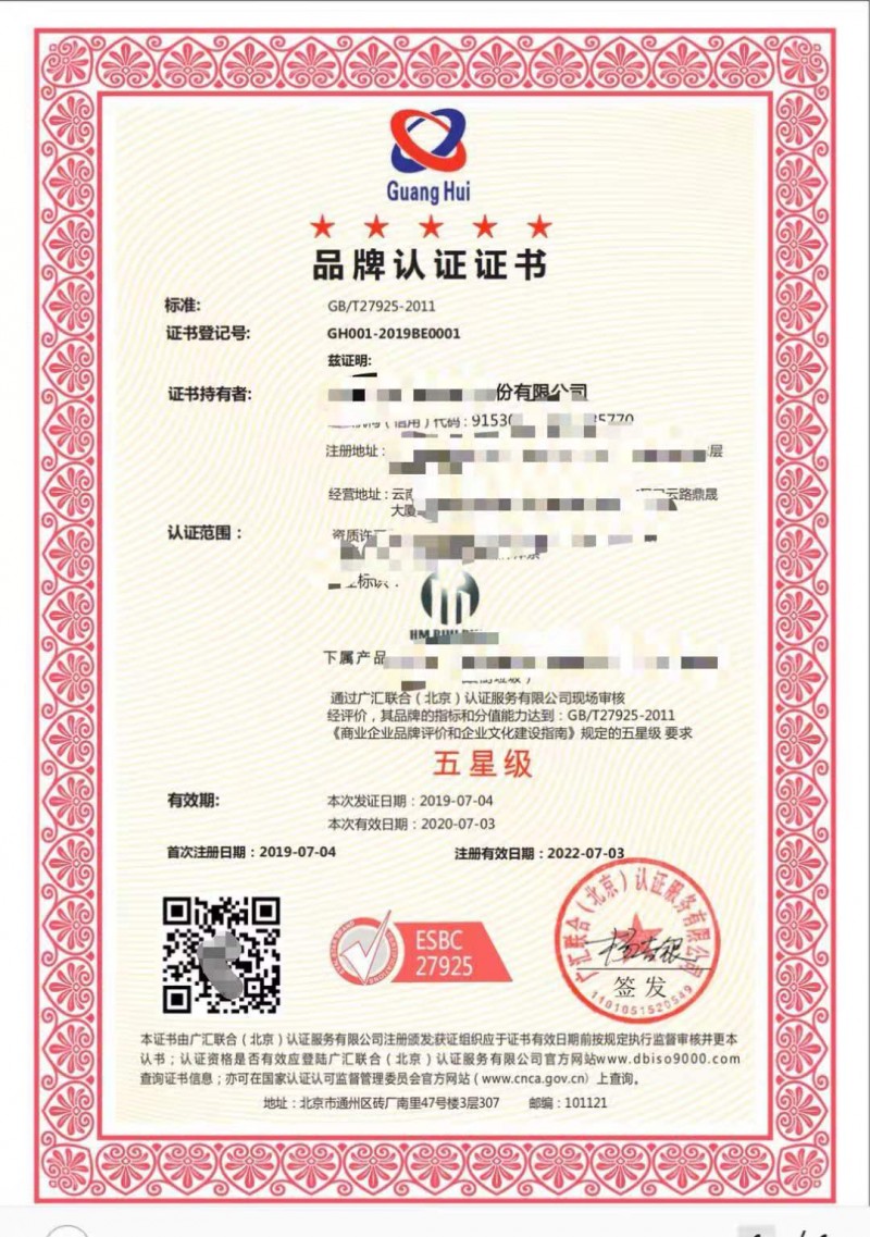 陕西服务认证机构五星级品牌服务认证流程周期费用五星级品牌认证是国家认监委根据GB/T27925-2011《商业企业品牌评价和企业文化建设指南》而批准的认证。由国家认监委审批的正规认证机构审核并颁发证书,证书有效期为三年。