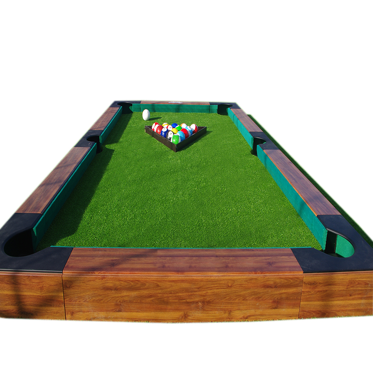 足球与台球的完美结合脚踢式台球,如果你既喜欢踢足球,又喜欢打台球,那好吧,请玩一玩这种健身游戏脚踢式台球也叫做桌上足球,这款设备是结合了足球的踢法和台球的游戏规则设计生产的,人们在游戏过程中需要站在一张的台球桌上进行游戏,踢台球它是将足球和台球完美融合后诞生出的新运动,其运动形式是一种用脚踢的桌球,人们站在足撞球台上用脚去踢母球使号码球进洞,而不是用杆打,非常的好玩