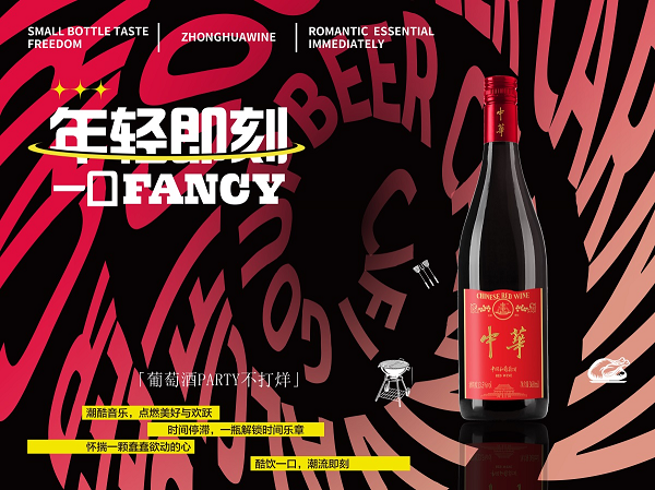 年轻消费占据主流,酒水市场也出现越来越多“破圈”行动,中华红酒推出首款即饮葡萄小酒,一改厚重玻璃大瓶,推出368ML小瓶装,螺旋开盖,即刻畅饮。从高端餐桌切入到酒吧、KTV、烧烤摊、露营等更多终端消费场景。