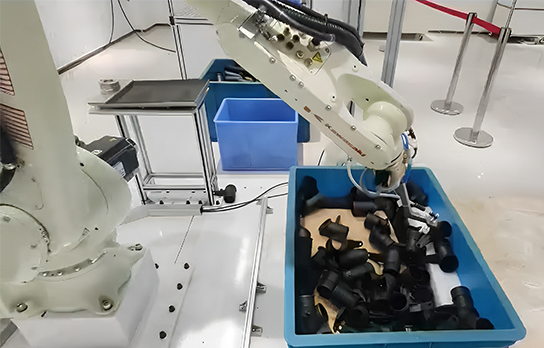 胶管无序摆放在料框中,3D视觉对工件进行识别和定位,引导机器人实现对胶管的无序抓取并上料,用机械臂替代人工,抓取精度±0.25mm,可24小时稳定运行。