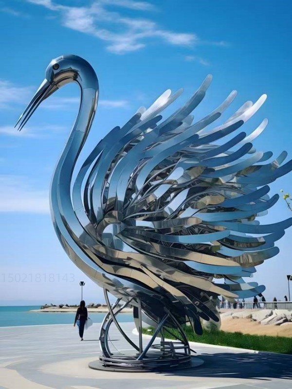 塑景承制镜面不锈钢鹤雕塑 不锈钢条编织雕塑 镜面不锈钢鹤雕塑采用不锈钢条打磨成镜面效果,再编织组成鹤的造型,不锈钢条编织鹤的翅膀根根分明,有种展翅欲飞的形象,鹤头与鹤颈是高倍镜面抛光,一体成型,阳光下的镜面鹤折射出不同光泽,打造美丽的视觉效果。