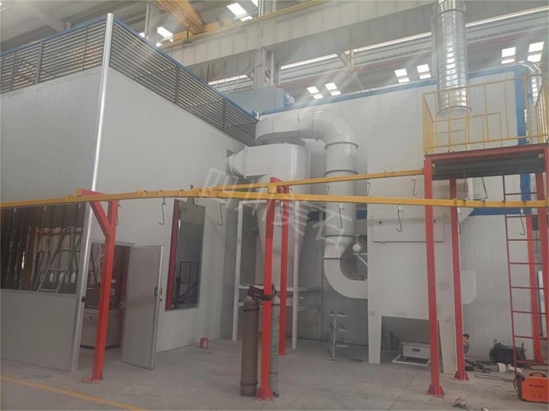 喷塑流水线主要配套设备:悬挂链输送机,不锈钢喷淋清洗剂,脱水炉,喷塑房,自动喷涂机,升降机,隔离房,加热炉,固化烘干炉,废气处理设备等。