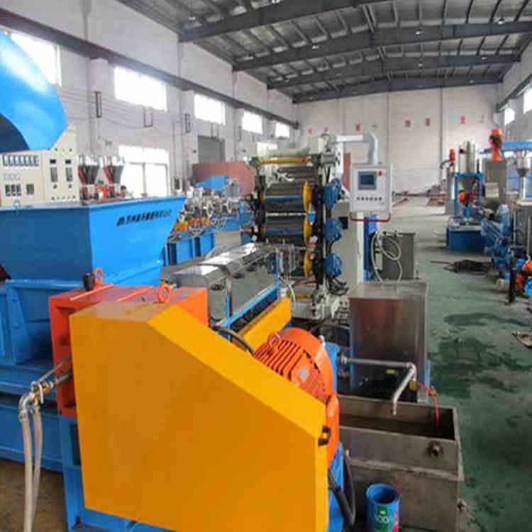 热塑性弹性体(Thermoplastic elastomer)也称热塑性橡胶(Thermop1astic rubber),是一种兼具橡胶和热塑性塑料特性,在常温显示橡胶高弹性,高温下又能塑化成型的高分子材料。也是继天然橡胶、合成橡胶之后的所谓第三代橡胶,简称TPE或TPR。热塑性弹性体聚合物链的结构特点是由化学组成不同的树脂段(硬段)和橡胶段(软段)构成。硬段的链段间作用力足以形成物理“交联”,软段则是具有较大自由旋转能力的高弹性链段;而软硬段又以适当的次序排列并以适当的方式联接起来。硬段的这种物理交联是可逆的,即在高温下失去约束大分子组成的能力,呈现塑性。降至常温时,这些“交联”又恢复,而起类似硫化橡胶交联点的作用。正是由于这种聚合物链结构特点和交联状态的可逆性,因而热塑性弹性体一方面在常温下显示硫化胶的弹性、强度和形变特性等物理机械性能,可替代一般硫化胶制造某些橡胶制品;另一方面,在高温下硬段会软化或熔化,在加压下呈现塑性流动,显现热塑性塑料的加工特性。TPO/TPE/TPU弹性体片材挤出机工艺:高混机----自动称重系统----------双螺杆挤出机-------流延模具----- ------淋膜辊/卧式辊----- ------上下支架----- ------牵引----- ------剪板机/收卷机