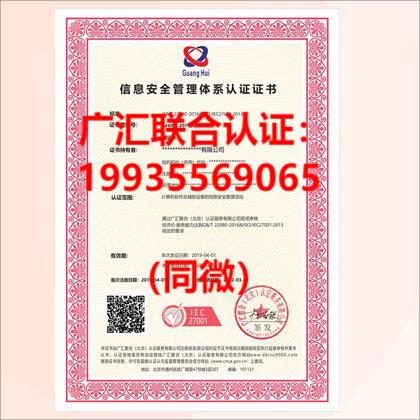 广汇联合认证, ISO 27001认证是一种国际标准,用于评估组织信息安全管理系统(ISMS)的完整性和有效性。该认证证明组织已经采取了一系列措施来确保信息安全,并且能够持续改进其信息安全管理体系。ISO 27001认证可以帮助组织保护其重要信息资产,遵守法律法规和合同义务,提高客户信任度,并为组织带来商业竞争优势。