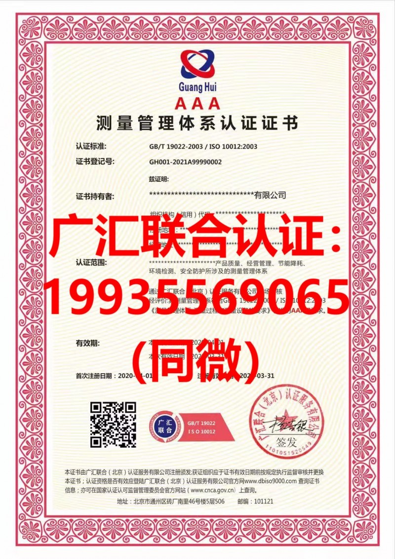 陕西ISO10012测量管理体系认证陕西iso10012认证机构 广汇联合介绍,ISO10012测量管理体系是针对企业计量管理,为完成计量确认并持续控制测量过程所必需的一组相互关联或相互作用的要素的。此项标准经过标准化部门转化并等同采用制定且经质量监督检验检疫总局批准发布。