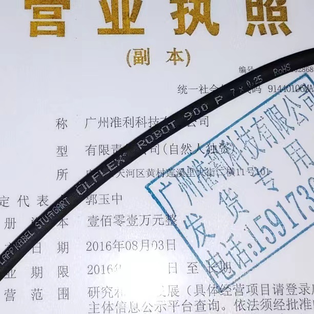 广州准利科技有限公司✆+86 13539761159 ☎+86 2062208903 ✉13539761159163.com工厂实供LAPP KABEL ÖLFLEX® ROBOT 900 P 7X0,25 RoHS机械手臂电缆,±360°/米旋扭,为多达500万次扭转运动而设计。源自德国U.I. Lapp GmbH D-70565 Stuttgart原厂原装进口,库存充足,货期便捷,5天发出,订货只需2-4周即可发出,使用范围广。ÖLFLEX® ROBOT 900 P-LAPP KABEL德国进口电缆适用于弯曲和扭曲应力同时存在的机械设备装配,ÖLFLEX® ROBOT 900 P德国进口电缆采用TPE芯线绝缘材料,PUR外皮黑色(RAL 7016).与ÖLFLEX® ROBOT 900 DP相较含镀锡铜丝绕包EMC±180°/米旋转,耐油,高柔性,耐扭转负荷,电缆外径小,可节省安装空间,是设备安装工程、机床行业、自动操作设备、输送设备、多轴、多关节型拖链机器人电缆优选产品。U.I. Lapp GmbH D-70565 Stuttgart A Lapp Group拥有八大实力牌:OLFLEX、UNITRONIC、HITRONIC、EPIC、SILVYN、SKINTOP、ETHERLINE,相关型号还有OLFLEX ROBOT 900 DP,OLFLEX ROBOT F1,OLFLEX ROBOT F1 ( C ),UNITRonIC ROBUST,UNITRonIC ROBUST C,UNITRonIC ROBUST C (TP),ETHERLINE PN Cat.5,ETHERLINE PN Flex,ETHERLINE PN Y Cat.5e BK,ETHERLINE Cat.5e 105 plus,ETHERLINE Cat.5 FRNC HYBRID,ETHERLINE PN Cat.5 FD,ETHERLINE TORSION Cat. 5,ETHERLINE FESTOON PN Cat.5e,ETHERLINE Cat.5 ARM,ETHERLINE PN Cat.6 A FC,ETHERLINE PN Cat.6 A FLEX FC,ETHERLINE FD CAT.6 A,ETHERLINE PN Cat.7,ETHERLINE PN Cat.7 FLEX,ETHERLINE TORSION Cat.7,ETHERLINE ROBUST FR,ETHERLINE LAN 200 Cat.5e,ETHERLINE LAN 350 Cat.6,ETHERLINE LAN 500 Cat.6 A,ETHERLINE LAN 1000 Cat. 7 A,ETHERLINE LAN 1200 Cat.7 A,ETHERLINE LAN 1600 Cat.7 A,ETHERLINE LAN 1000 Cat.7 OUTDOOR,ETHERLINE LAN RJ45 Cat.6 A,HITRonIC POF DUPLEX PNB PA-PVC 980/1000 POF,HITRonIC POF DUPLEX FD PNC PA-PUR 980/1000 POF,HITRonIC PCF DUPLEX FD PNC PVC-PUR 200/230 PCF,HITRonIC TORSION 4G 62,5/125,HITRonIC TORSION 4G 50/125,HITRonIC TORSION 4E 9/125,HITRonIC HRM-FD1000 4G 50/125,HITRonIC HRM-FD1000 4G 62.5/125,HITRonIC HRM-FD1400 8E 9/125……更多机器人电缆应用细节和型号与配件请与我们联络,以下是LAPP OLFLEX ROBOT 900 P 部份型号与规格:0028145 OLFLEX ROBOT 900 P 18G0,5
