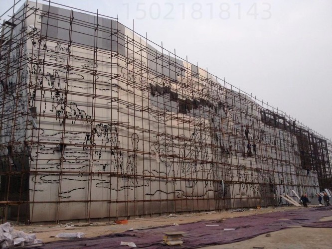 大型不锈钢浮雕景墙 山水景观雕刻长120米的不锈钢艺术卷轴画浮雕安装在南昌九龙湖绿地,大型灯光景观墙上雕刻着山水画,白天近观做工细致、纹理清晰、线条流畅;远观是一副潺潺流水的山水画,落日晚霞折射在景墙上,天蓝云白晚霞似火,霞光多变一会儿红彤彤、一会儿金灿灿的,唯美吸睛;夜晚在灯光的照耀下、整个浮雕上的山水画山高水流水光影影、山似雾环绕甚是壮观。是一个城市标志性的景观建筑。
