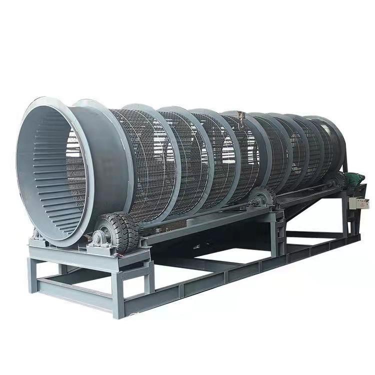 滚筒筛是分选技术中应用非常广泛的一种机械,是通过对颗粒粒径大小来控制垃圾分选的,分选精度高。滚筒筛的筒体一般分几段,可视具体情况而定,筛孔由小到大排列,每一段上的筛孔孔径相同。破碎的石料进入滚筒后,一方面随着滚筒转动而被筛选,一方面粒度大的石料沿着滚筒的斜度向前流动,通过不同网目的的筛网逐渐被筛出。不大的石料筛出后落入各自的漏斗,然后由人工运出或自流送往成品堆。