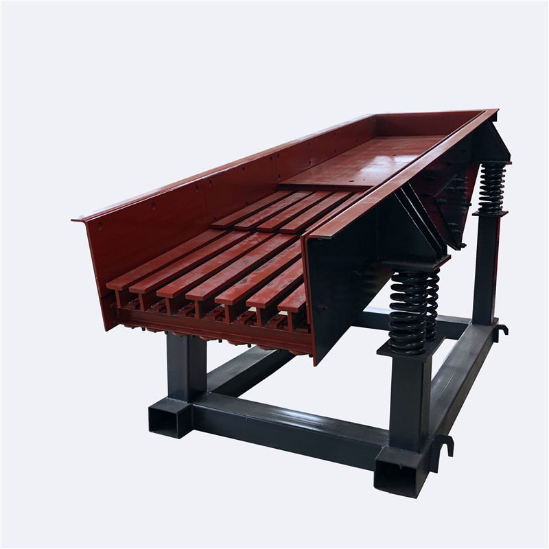 振动给料机又称振动喂料机,是指可把块状、颗粒状物料从贮料仓中均匀、定时、连续地给到受料装置中去的一种设备。在砂石生产线中可为破碎机械连续均匀地喂料,并对物料进行粗筛分振动给料机广泛用于冶金、煤矿、选矿、建材、化工、磨料等行业的破碎、筛分联合设备中。
