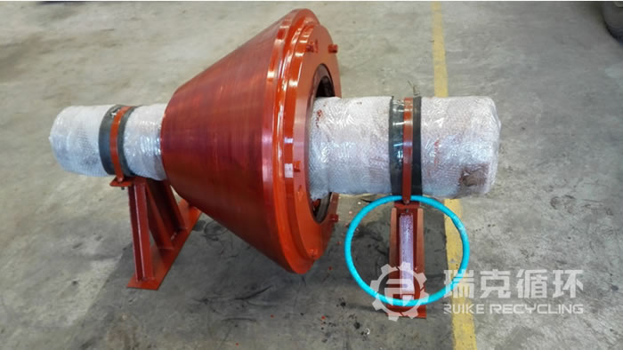 先将主轴磨损位置进行粗车,然后探伤进行探伤检测处理,确保母体材质没有裂纹和疲劳层后转入下道工序。