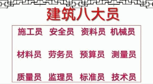 一、八大员指哪八大员:施工员、质量员、安全员、标准员、材料员、机械员、劳务员、资料员。