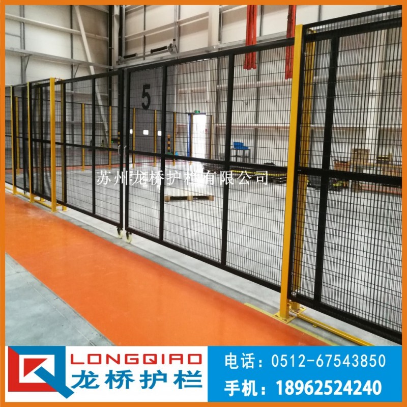 机器人隔离网(江苏工厂流水线机器人防护栏 机器人护栏推拉门 黄柱 黒网 龙桥订制)参数