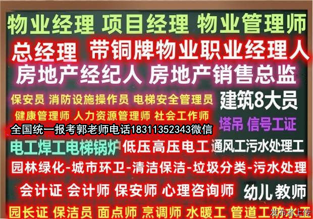 成培训郭老师,报名微信:18311352343电话咨询在线一对一咨询了解报考详情物业经理 物业项目经理 物业部门经理 物业总经理 物业副总经理 物业管理员 物业管理师 ,碳排放管理师,碳排放咨询师,碳排放核查师,碳排放评估师,碳排放监测师,碳资产管理师等