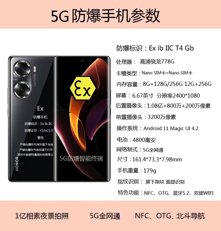 金铠特K60防爆手机安全防爆,5G网络,1亿像素高清四摄,NFC,高通处理器