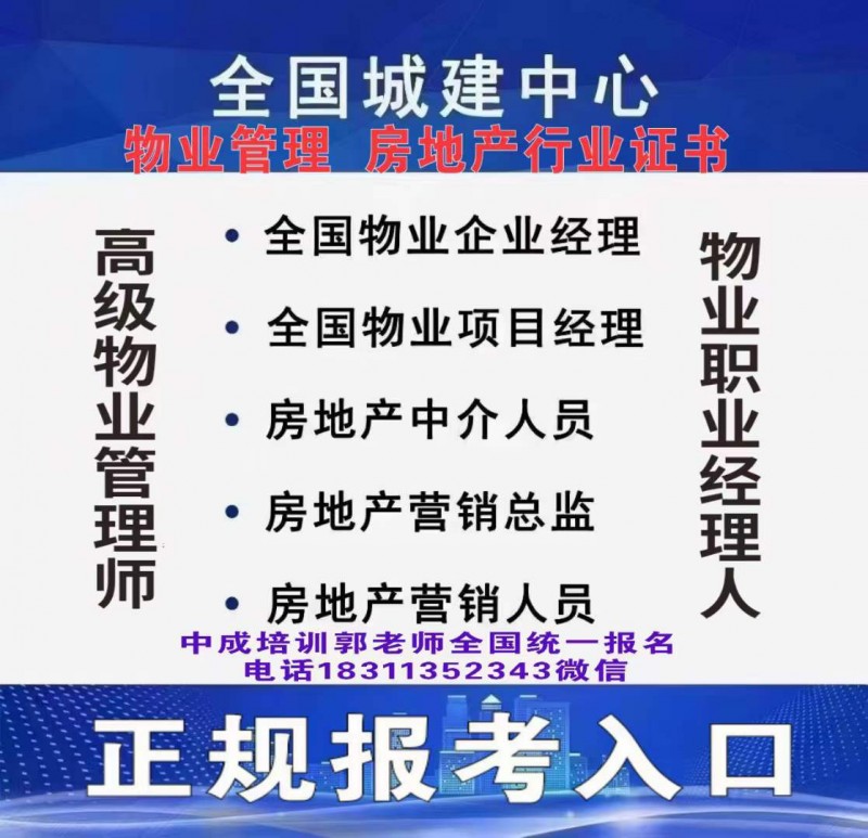 中成培训2011年成立至今13年单位!如想了解更多可联系中成培训郭老师电话微信 183-1135-2343, QQ 1277-366-319物业经理岗位职责:负责全面管理,人事,消控,巡视,停车管理,客户服务,催收各项费用及维护园区内住户关系,设备运行保养、安保、保洁和绿化等方面,对机电设备、建筑物、公共设施和环境等方面的综合性检查。日常管理,检查和质量监督,进行了解发现问题及时解决