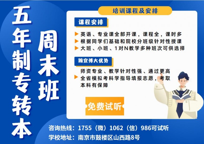 江苏瀚宣博大专转本周末班、暑假全日制集训营火热招生进行中,名额有限,预报从速!