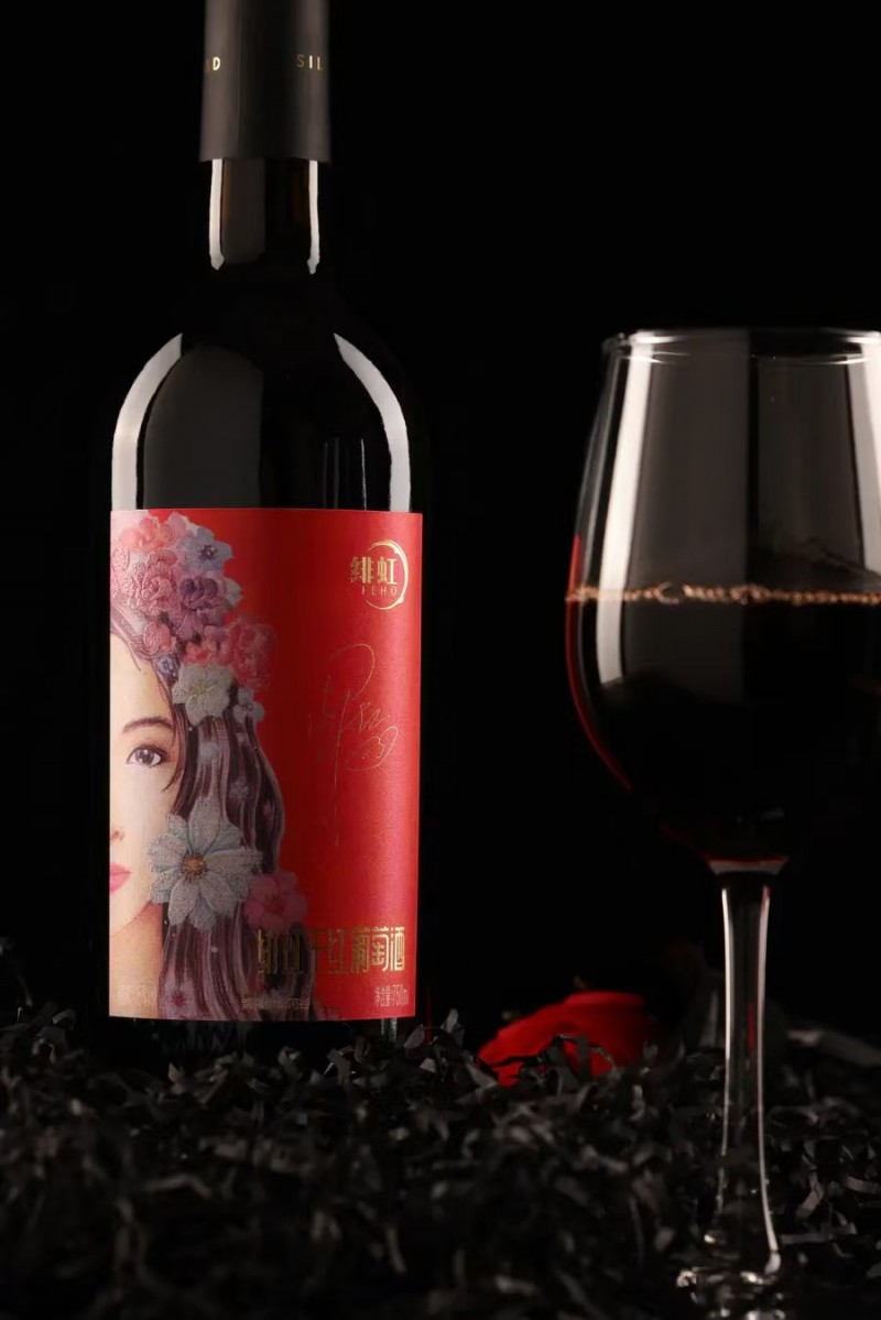 香港知名演员、歌手翁虹自创红酒品牌绯虹丝路酒庄干红葡萄酒。