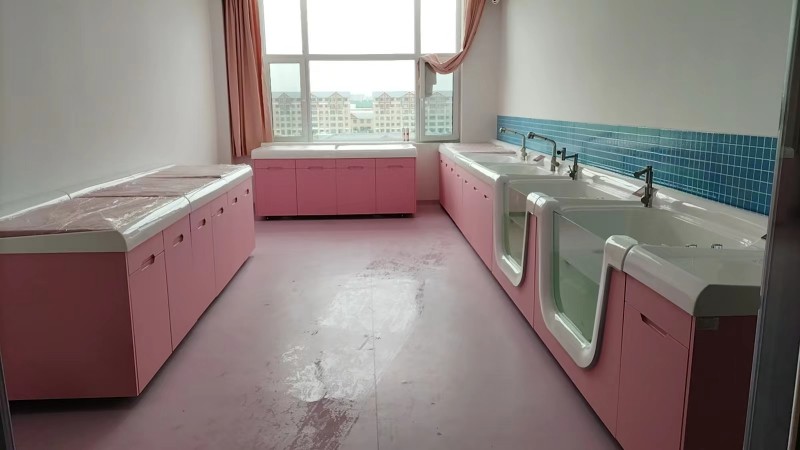 迪新婴儿洗浴中心拥有良好的台面质感,细腻亲切,无冰冷感,全弧形造型设计给婴儿体贴的呵护与关怀,洗礼池和游泳池特有的裙边设计,既方便固定一次性防交叉感染隔膜袋,又防止台面上污水流入池内。游泳池利用有效的水平面积提供更加理想的池内净深度,满足婴幼儿洗浴时的安全高度需要,同时有效保持水温特别设置水位线,防止婴儿游泳时池水外溢。