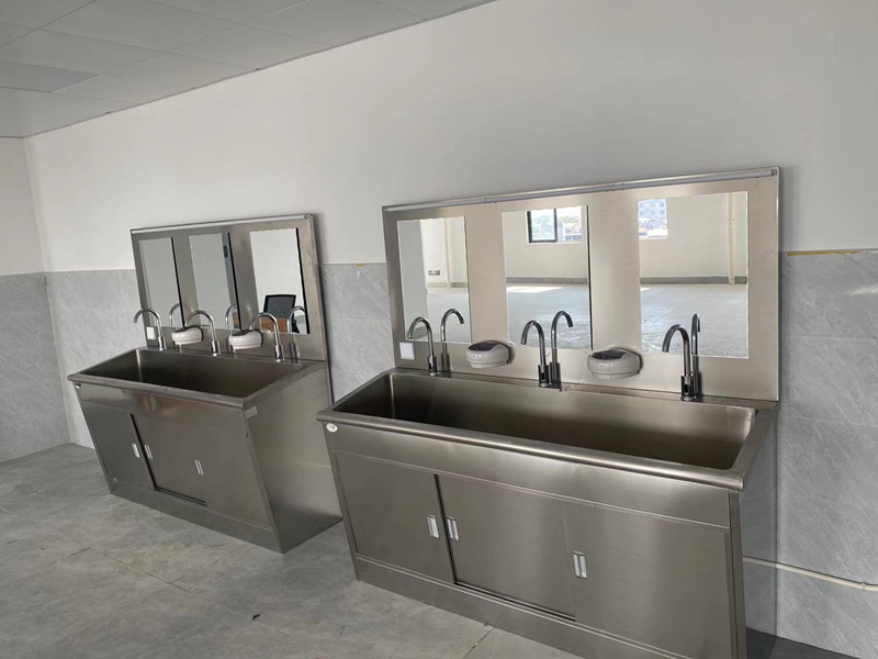 不锈钢洗手池出水方式分为:感应式、膝碰式、脚踏式
