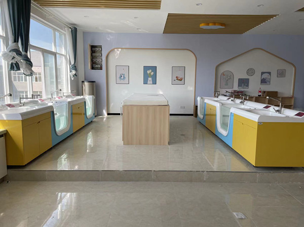 迪新婴儿洗浴中心拥有良好的台面质感,细腻亲切,无冰冷感,全弧形造型设计给婴儿体贴的呵护与关怀,洗礼池和游泳池特有的裙边设计,既方便固定一次性防交叉感染隔膜袋,又防止台面上污水流入池内。游泳池利用有效的水平面积提供更加理想的池内净深度,满足婴幼儿洗浴时的安全高度需要,同时有效保持水温特别设置水位线,防止婴儿游泳时池水外溢。