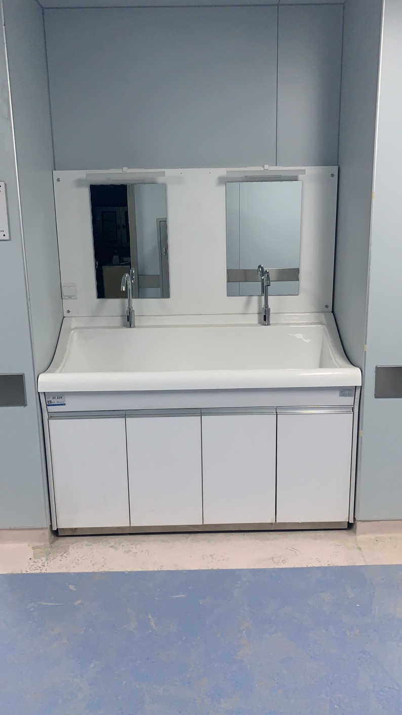 高分子洗手池材质特点:采用高分子材料一次吸塑成型,出水方式有:感应式、膝控式、脚踏式和手动开关,一台洗手池可客户要求选择单一出水方式或多种出水方式。洗手池分高背和低背,高背总高度1800mm,配有美容镜,照明灯,皂液器,可按客户要求配置烘手器和热水器。低背板无配置。规格型号:单人位规格800*650*1800(高)/1210(低)mm