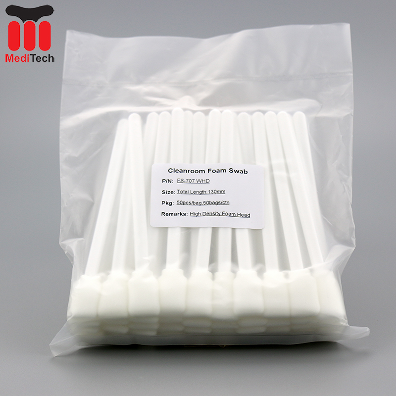 FS707WHD白杆方头高密度海绵无尘净化棉签由PP聚丙烯杆和高密度海绵头采用热压工艺制成,棉签牢固不易脱落,头部采用高密度海绵头做原料并在无尘室净化加工,具有极低的发尘量、吸液性强、柔软洁净等特点,高标准的无尘室内生产、包装,低发尘量、真空包装保存时间长,广泛用于洁净室、无尘室、集成电路、精密仪器、液晶显示器、微电子、生物医药、汽车、硬盘、光学、食品工业及航天航空领域。