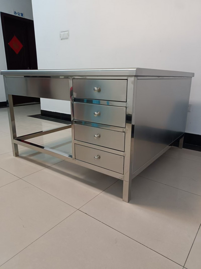 不锈钢制品打包台三层抽屉中间带玻璃器械操作台