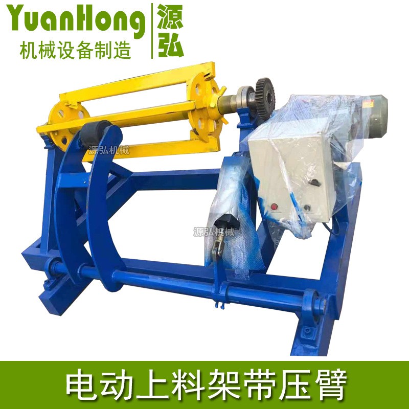 彩钢卷上料架配合冲床之全自动生产部件,节省人力,物力,降低成本,效果特好。使用方式简单,本电动放料架故障少,寿命长。