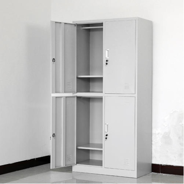 东莞康胜加厚铁皮更衣柜四门一体设计使用更方便。