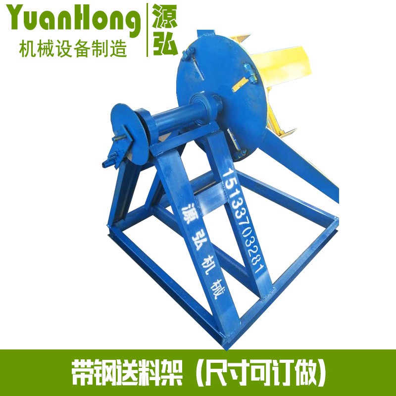 刀具的原材料选用钢材,因此在刀具生产过程中,需要将钢卷放到放料架上放料,现有的放料架在对钢卷进行放料的时候,有的放料架不具有通用性,不能用于不同内径的钢卷,为了增大放料架的适用范围,因此现有技术中在放料架上增加了扩张支撑结构,利用液压放料架扩张支撑,然后由牵引装置进行牵引放料,该扩张支撑结构一般由支撑杆组成,支撑杆两端分别连接扩张板和转轴,多根支成三角形的支撑结构,通过液压机构调节支撑,但是,由于钢卷本身过于沉重,扩张支撑结构受力大,支撑杆处撑杆形于铰接状态,极易损坏,在非正向支撑时,扩张支撑结构受到侧向力,支撑更加薄弱,更加容易损坏。