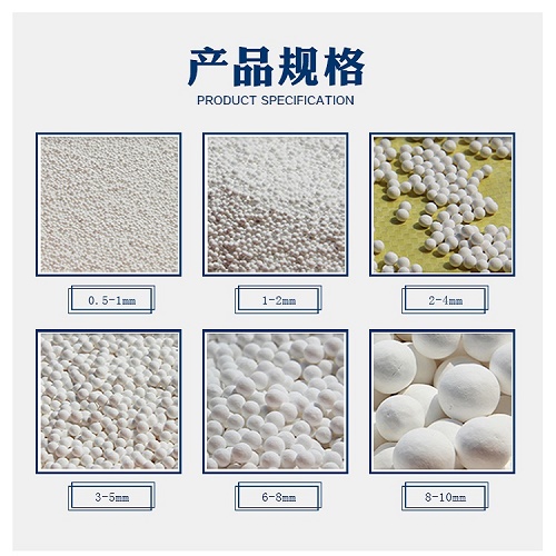 活性氧化铝干燥剂:本品是一种多微孔球状物质,具有很强的吸附功能,比表面积大、抗压硬度高,使用寿命长,并能通过再生方法反复使用。本品为白色、球状多孔性物质无毒、无臭、不粉化、不溶于水。广泛应用于石油化工、化工、纺织、治金等行业的仪表风干燥,变压吸附空分装置中,吸附露点可达-41度以上,也可用于钢铁、石油裂解气、乙稀、丙稀中的液相及气体深度干燥。