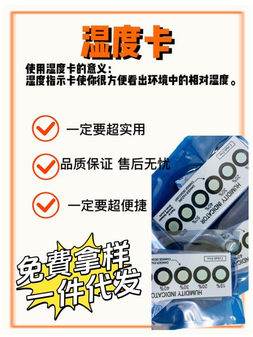 大部分的电子元器件、精密光学部件等电子、仪器设备容易受到湿气的影响导致产品锈蚀、灵敏度降低甚至导致不可恢复的损坏。为避免产品受到湿气的侵蚀及损坏,大部分产品会采用防潮包装组合,在z后成品及半成品的包装阶段对产品进行保护,而湿度显示卡就是便捷、经济的检测湿度是否在受控范围的物料,当打开密封袋,湿度卡上的颜色显示读出的数据就可以作为监察密封包装内的湿度是否在规定的湿度范围之内的依据,同时,也能间接反映出密封包装内的干燥剂是否发挥吸潮效果。
