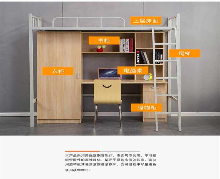 厂家直供上床下桌加厚组合床床铺承重能力强。