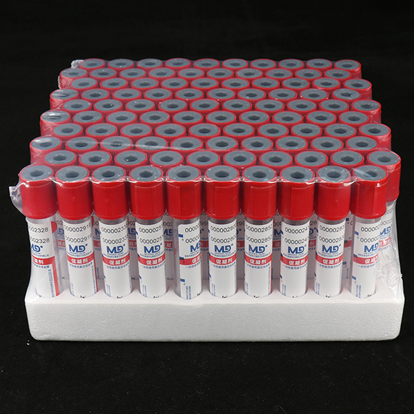 产品说明:采血管内璧均匀涂有防止挂璧的硅油,同时添加了促凝剂。促凝剂可激活纤维蛋白酶,使可溶性纤维蛋白变为不可溶的纤维蛋白多聚体,进而形成稳定的纤维蛋白凝块。快速血清管可在5分钟内使采集的血液凝固,适用于急诊血清系列化试验。